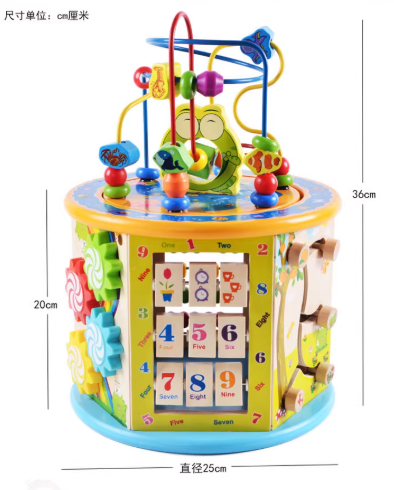 The Eight Syncretic Multifunctional Intelligence Big Round Bead Activity Cube is an all-in-one educational play center designed to stimulate your child’s curiosity and cognitive growth. With eight engaging activities including bead mazes, shape sorting, time learning, abacus counting, and more, this toy provides hours of interactive fun.