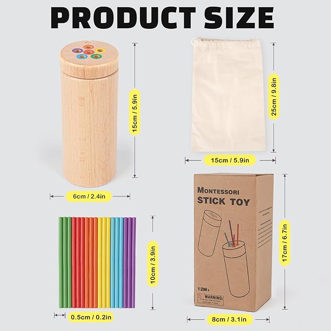 Montessori Toy Sorting Activity: The fine motor skills toy is perfect for toddlers from 18 month to 3 years old, babies love to put objects into holes.The Montessori toy has 12 wooden sticks in 6 different colors, toddlers can put the sticks into the corresponding color holes as a way to develop hand-eye coordination and the ability to distinguish colors; develop their curiosity and desire to explore.