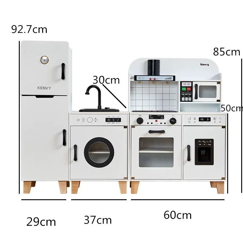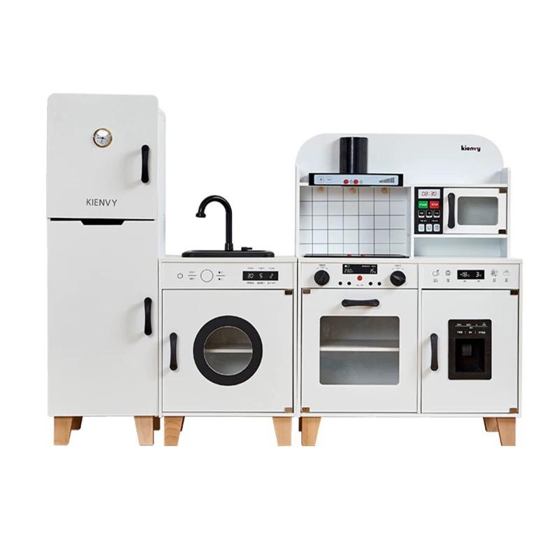 The Little Chef & Home Set is a beautifully designed, high-quality pretend play kitchen and home appliance set for children. It includes a realistic refrigerator, washing machine, sink, oven, and microwave, all built to mimic modern household appliances. The set features knobs that turn, doors that open and close, and compartments for added storage, creating a lifelike experience for young homemakers. Its minimalist design and wooden construction make it a perfect addition to any playroom or living space.