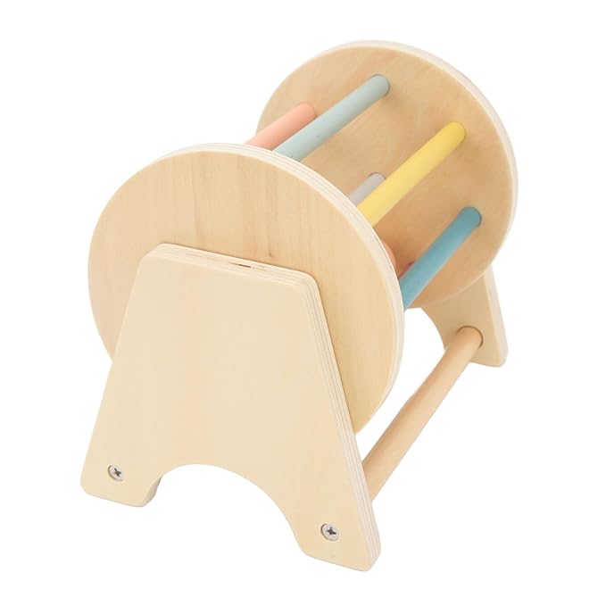 "Logic Thinking: This wooden rattle rolling drum is designed with 4 balls, which can develop your toddler's logical thinking and problem solving skills.