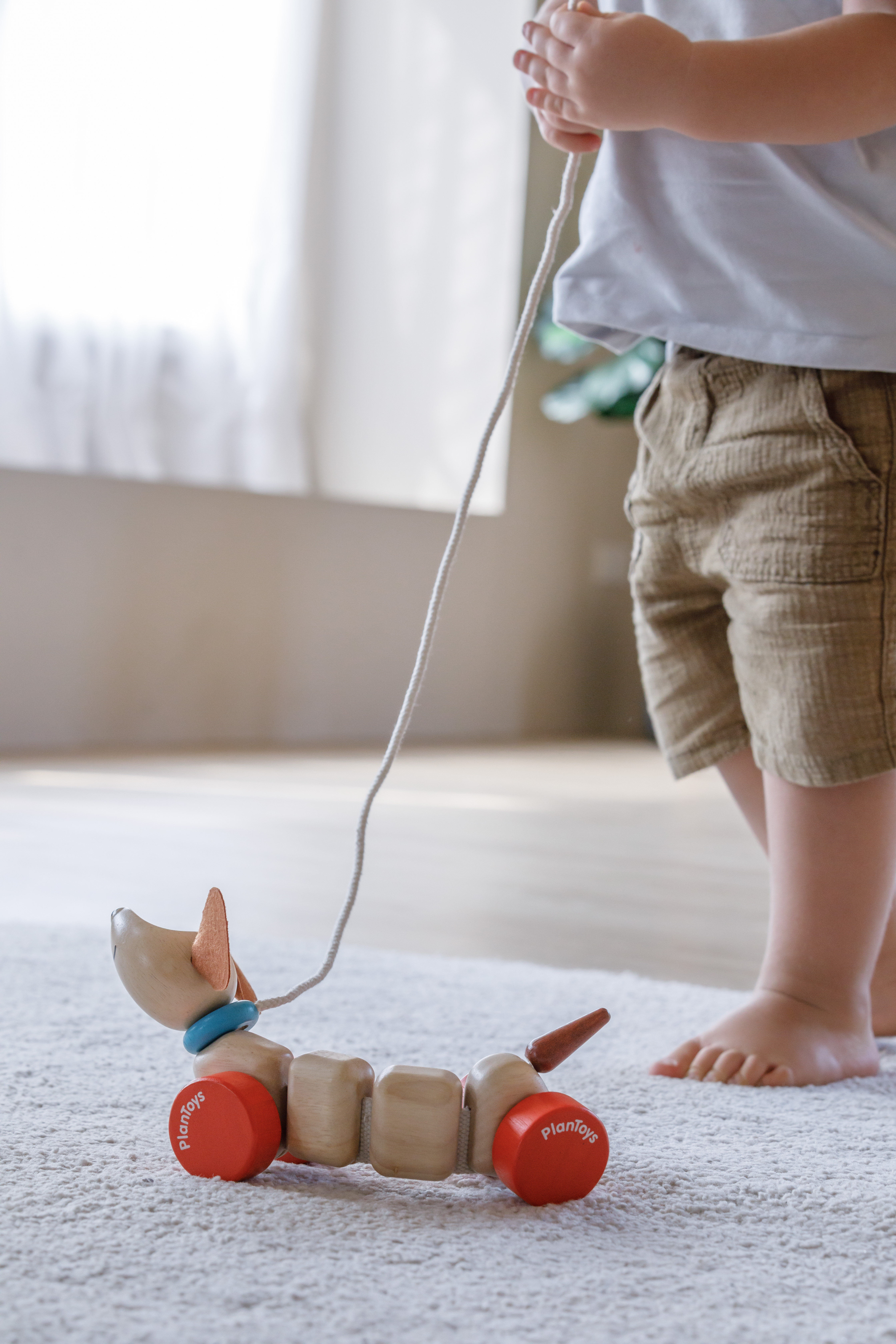 SUPPORTS DEVELOPMENT: Imaginative thinking is supported as children pull the puppy along like a real pet. Fine and gross motor skills are enhanced while grasping pulling and walking alongside the puppy. Concentration and hand-eye coordination are also developed as children focus on walking in a straight line to keep the puppy moving pulling the toy with enough force to propel it forward and maintaining balance to keep the puppy upright.
