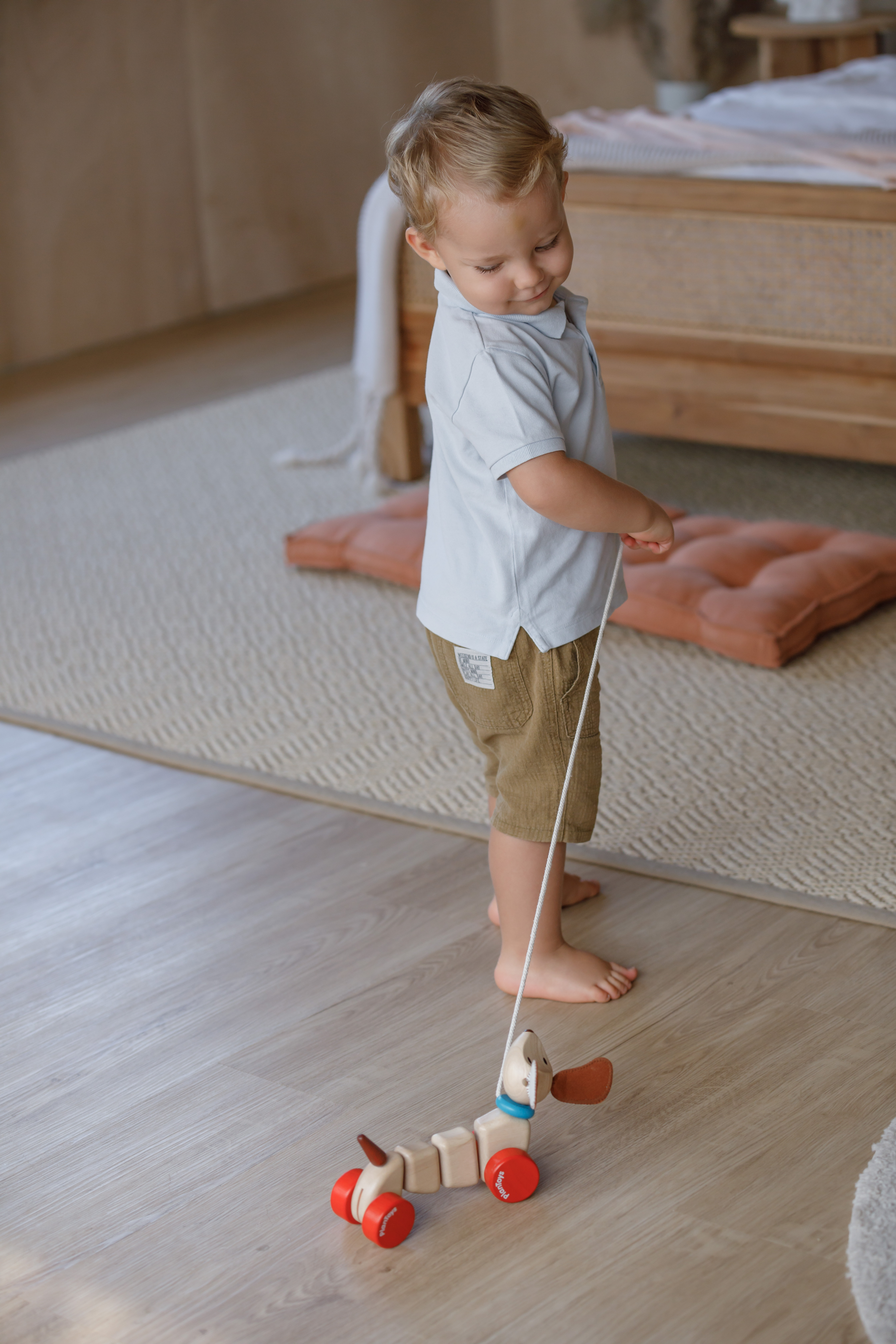 ACTIVE PLAY: Take the Happy Puppy for a walk down the street or through the park! Pulling the puppy along engages children’s fine and gross motor skills while also inviting them to practice walking on their own two feet. Watch the toy wiggle and wag as it’s pulled.