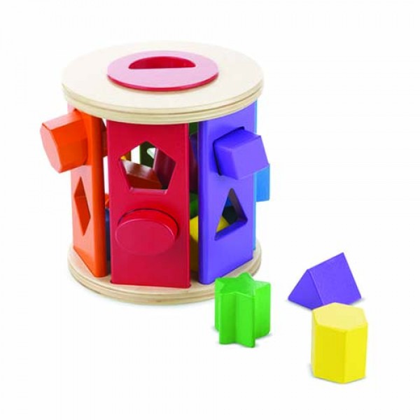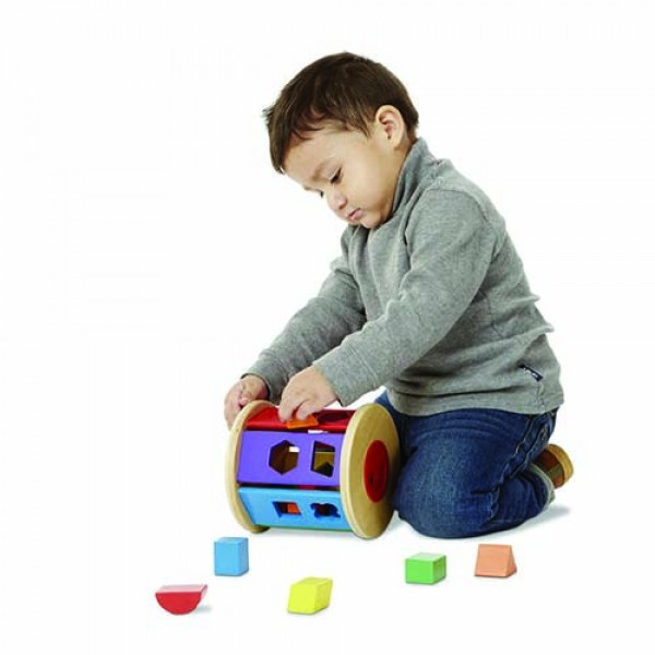 This brightly coloured wooden shape sorter is an exciting update on a classic toy! Toddlers can drop the dozen-plus vibrant wooden shapes--including a triangle, octagon, star, rectangle, square, trapezoid, hexagon--through the colour-matched holes, then roll the drum along, open the lid, and start all over again. An early-learning powerhouse that encourages colour and shape recognition, manual dexterity, and more!