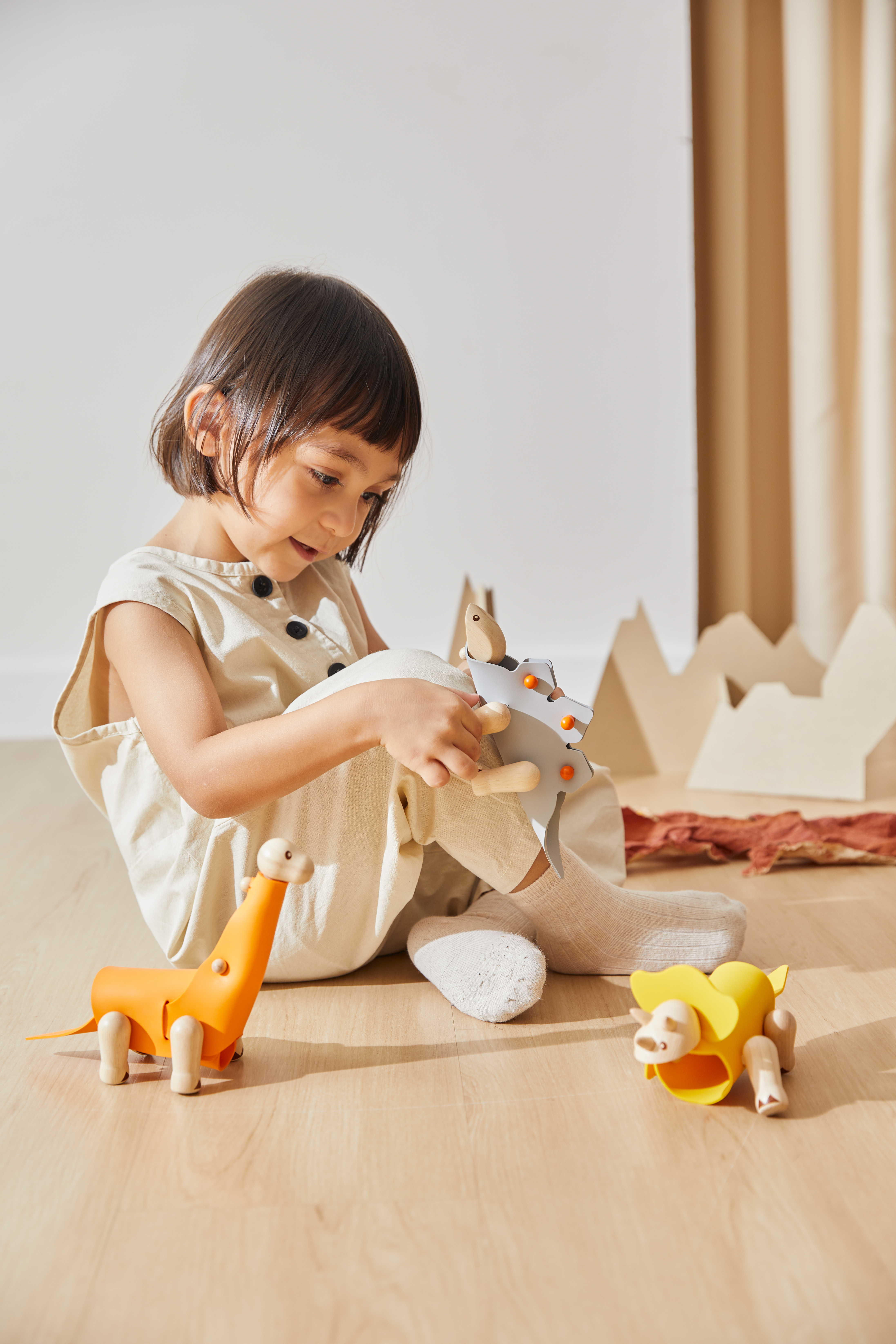 Lookout, it’s a Pterodactyl! This flying dinosaur, also known as a pterosaur, can transform into a three-dimensional form by combining a variety of different parts, both rubber, and wood. Take the transformation even further by adding materials of your choice with a dash of imagination. An infographic flashcard is included to combine learning with play.