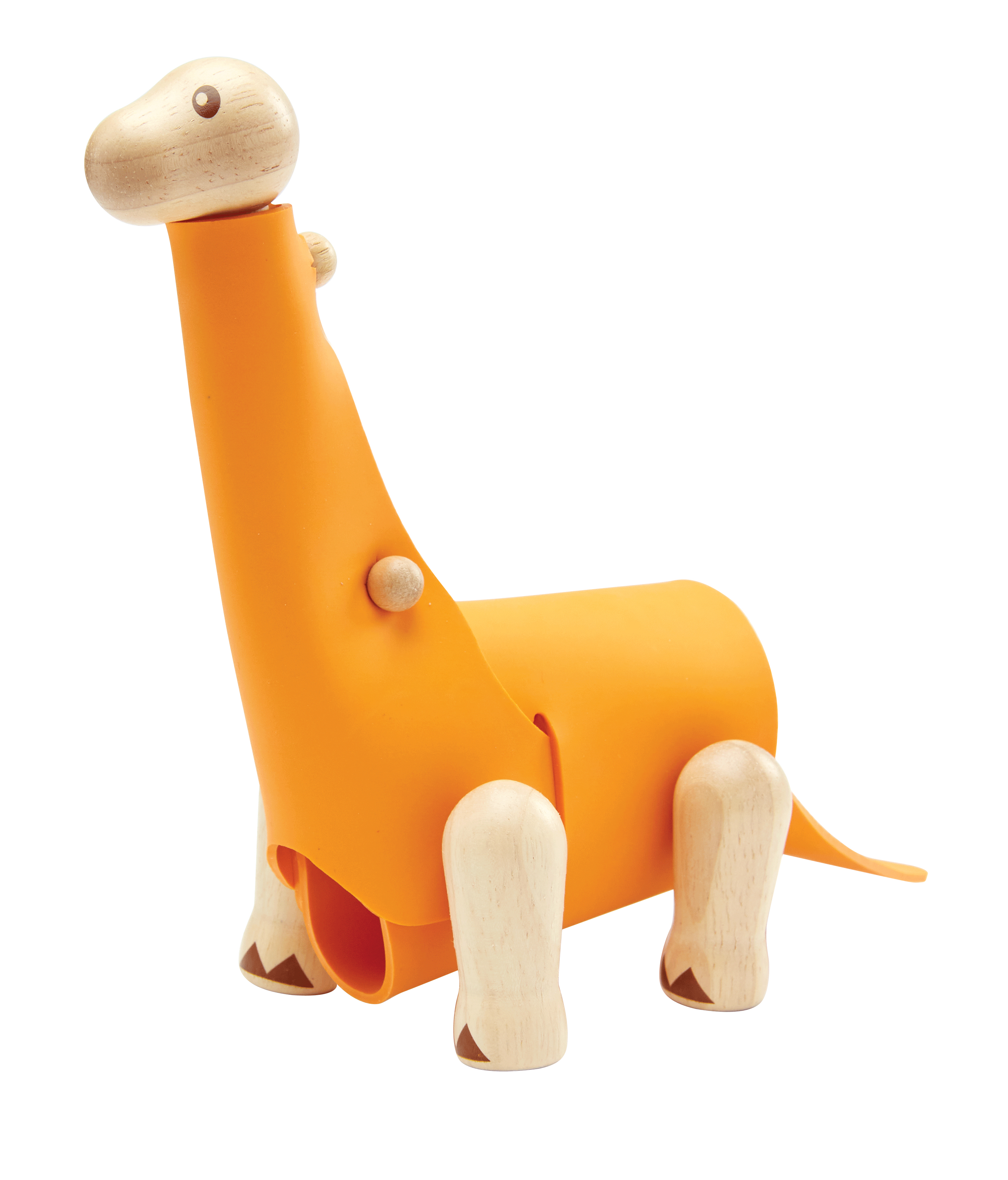The Brachiosaurus, also known as a sauropod, can transform into a three-dimensional form by combining a variety of different parts, both rubber and wood. Take the transformation even further by adding materials of your choice with a dash of imagination. An infographic flashcard is included to combine learning with play.
