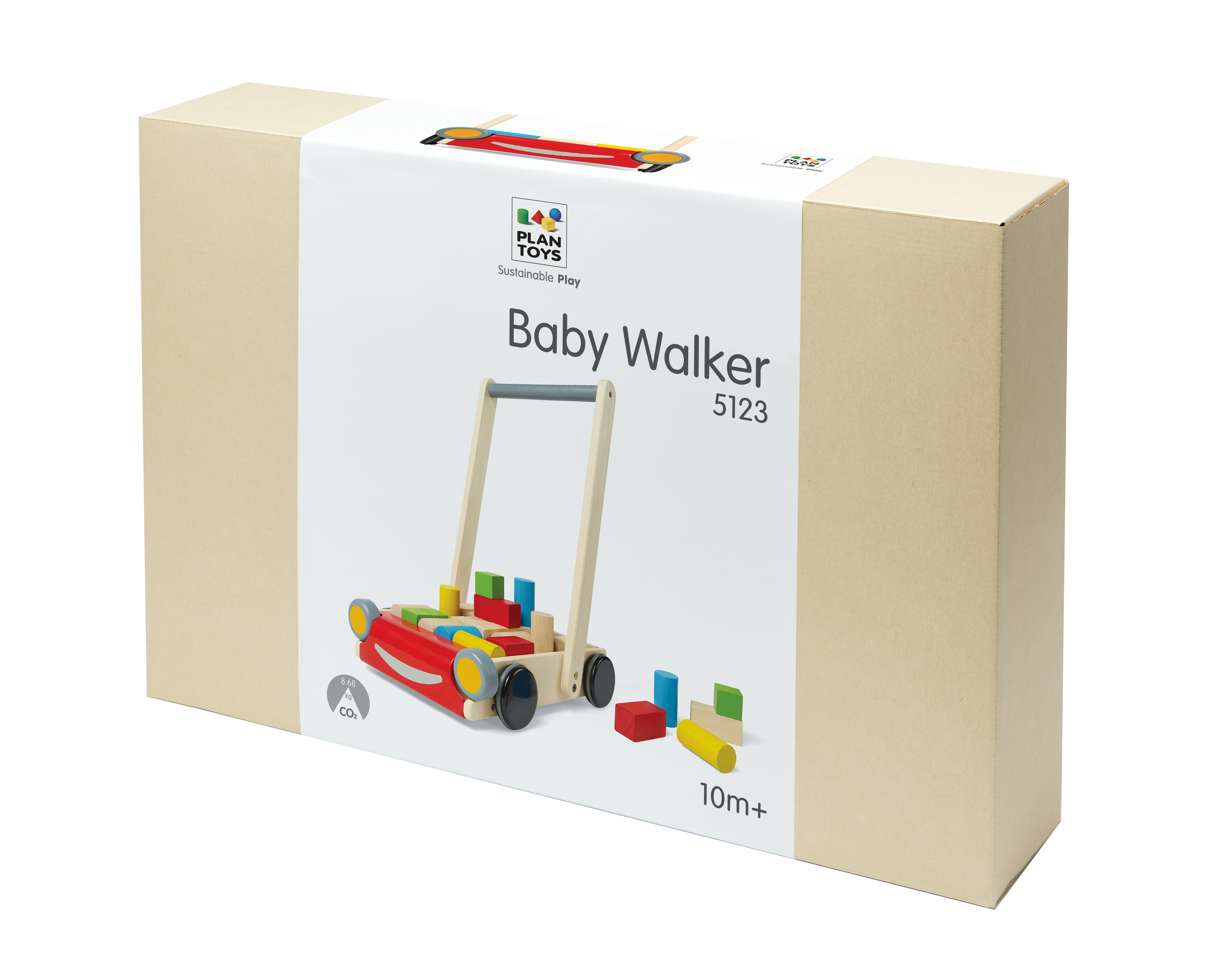 Cruise through early developmental stages with the PlanToys Baby Walker! This toy can help develop fine and gross motor skills while encouraging children to walk on their own two feet. The handle is adjustable to fit various heights. Plus, this Baby Walker comes with 13 colored and 11 natural wooden blocks so children can create and build things with their imagination.