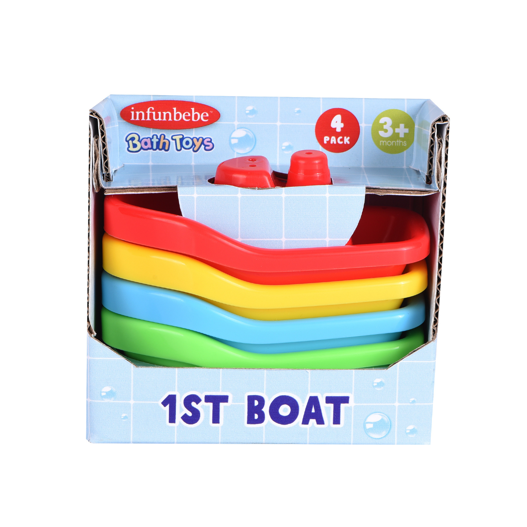 The Infunbebe 1st Boat (4pcs) - Blister is a delightful set of four colorful plastic boats designed to make bath time enjoyable for your little one. These lightweight boats are crafted from durable PP plastic, allowing them to float effortlessly on water, sparking your child's imagination during bath time.