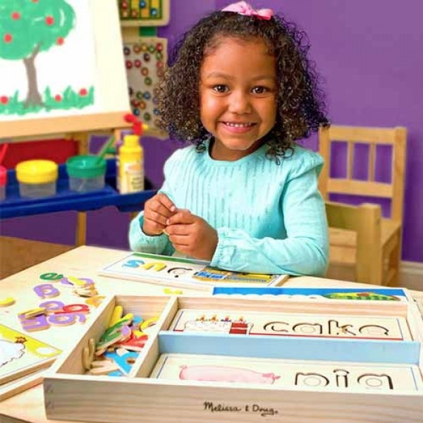 All this spelling and fine motor fun fits into one compact wooden storage case!