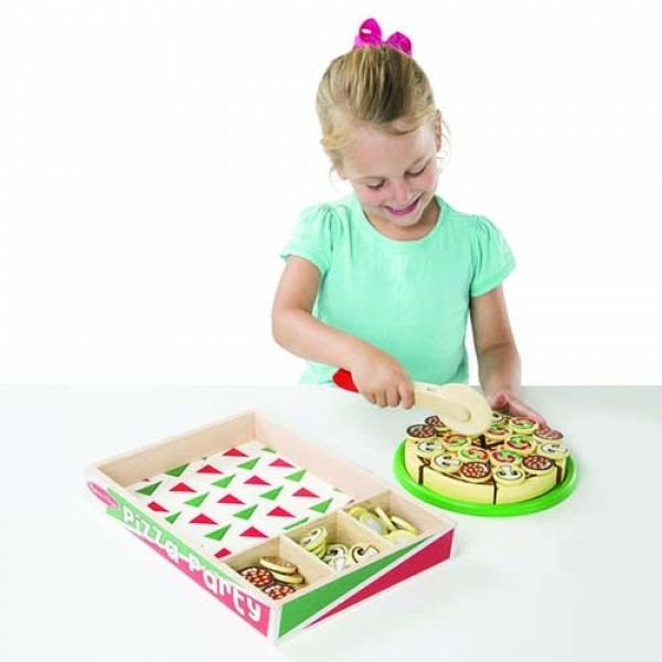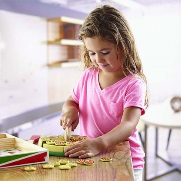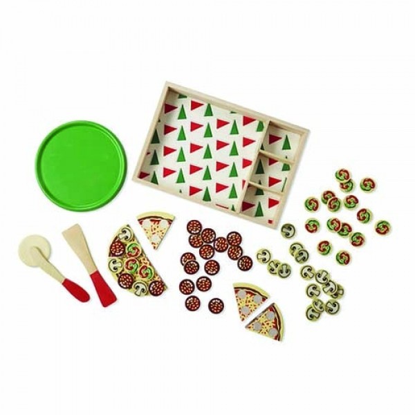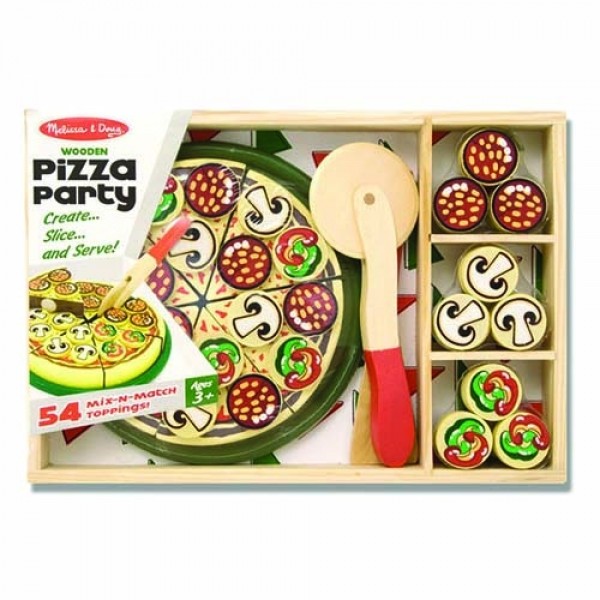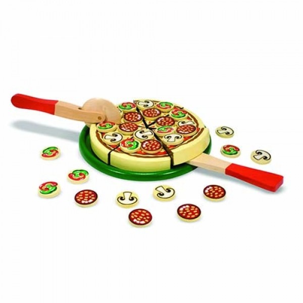Young pizza chefs will shout "Mamma mia!" when they see the 54 toppings that come with this wooden pizza set. Then they'll get busy topping, cutting and serving up six custom slices for their happy customers.
