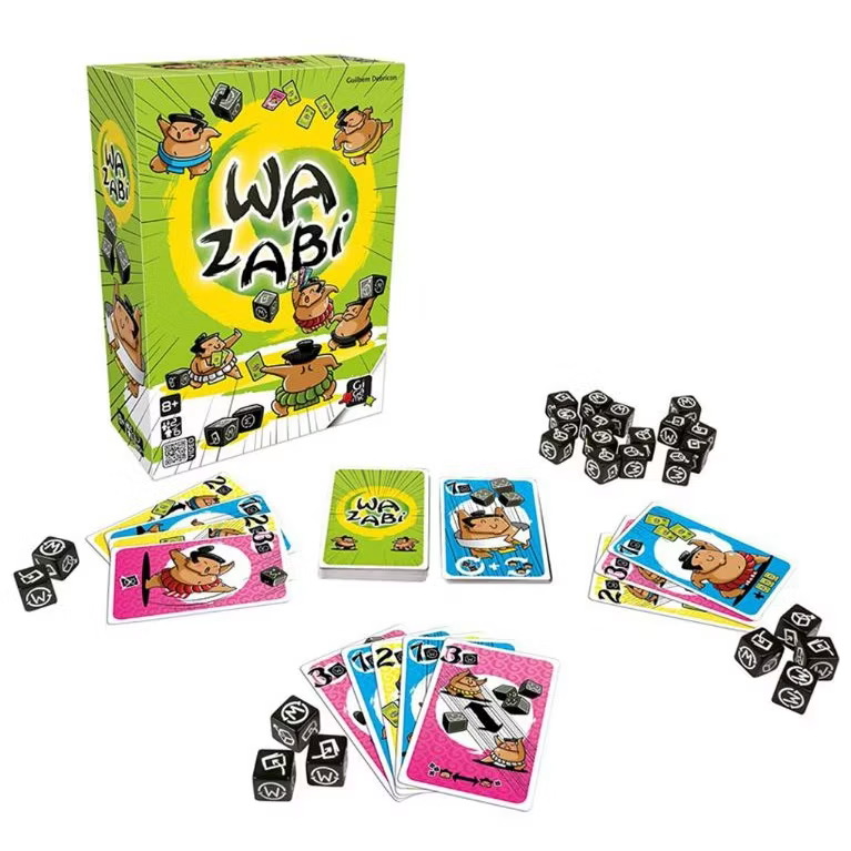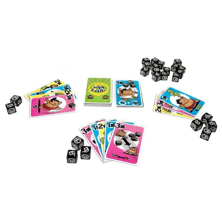 Includes 36 illustrated cards, 24 engraved dice and rules of the game.
