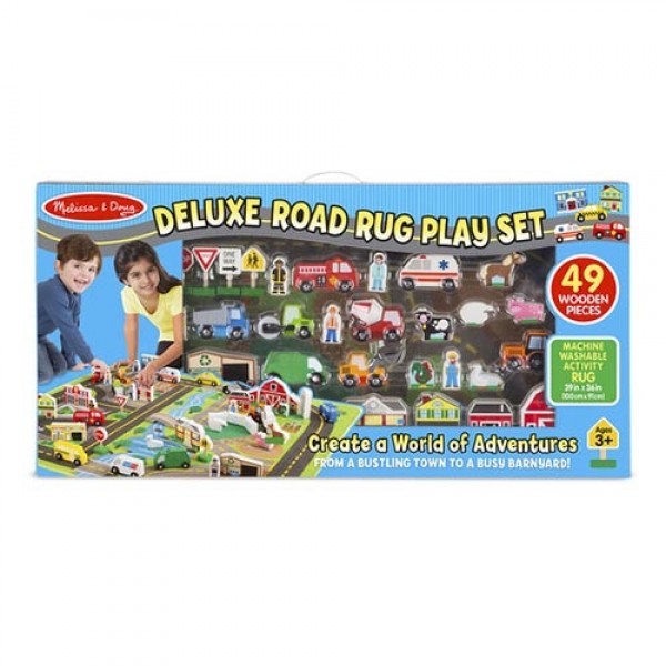 Activity rug and with both Town and country scenes and 49 wooden play pieces.