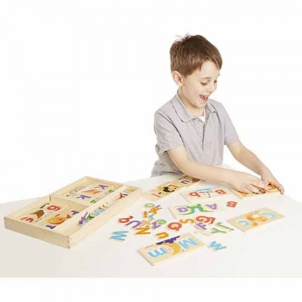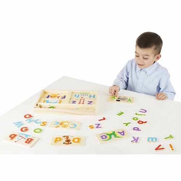 ABC, tell me what you see! These adorably illustrated boards are a great way to work on letter and word recognition; a child simply picks a board--the first letter of his or her name is always a good place to start--then fills in the uppercase and lowercase letters and identifies the picture. He or she can turn it over or take another board and do it all again. With so many letters (each letter in the alphabet in both uppercase and lowercase), children can find infinite ways to play!