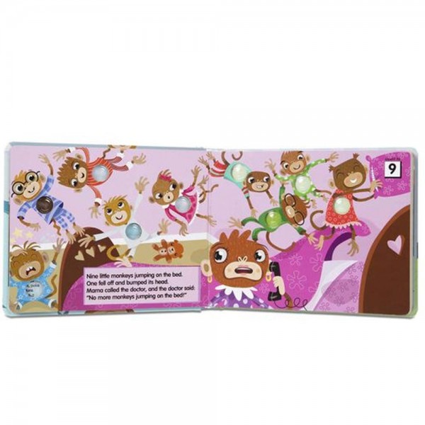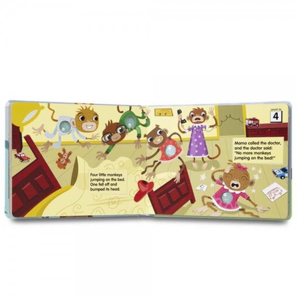 This sturdy 20-page interactive board book invites kids to pop along as they count all the little monkeys jumping on--and falling off--the bed!
