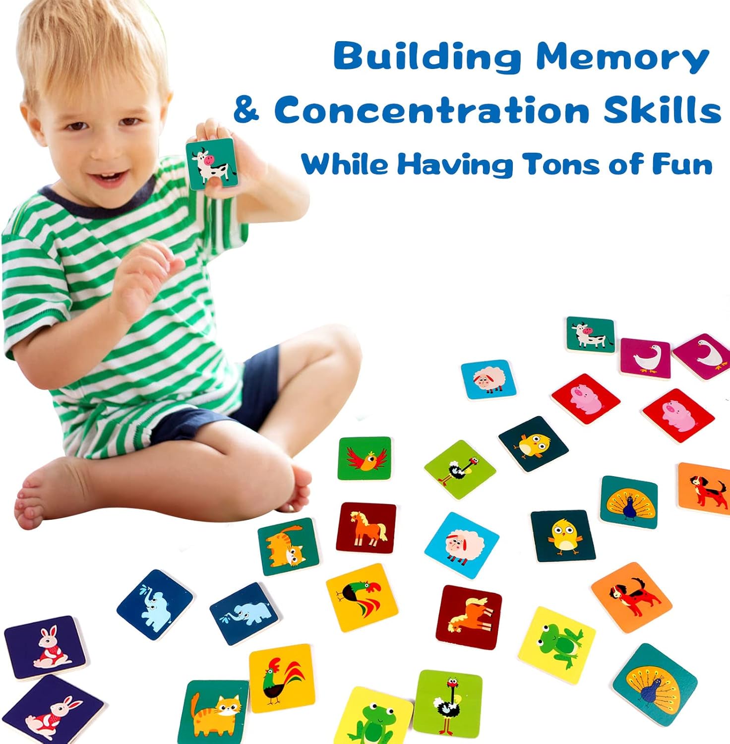 AtoyLink - MATCHING MEMORY GAME CUTE ANIMAL WOODEN MEMORY CARD MATCHING GAMES